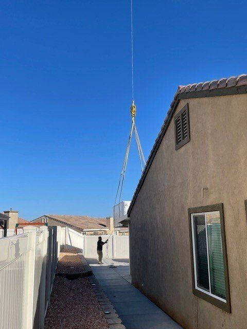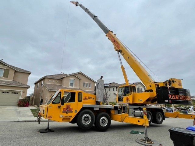 Need a reliable crane service? Look no further. Get Hooked is a full service Crane company! The cool stuff we do on military bases and government facilities, we can’t take pictures of but we also do HVAC change outs, spas and sheds for residential projects every day. Let us know how we can help do your heavy lifting. 661.942.0195Button